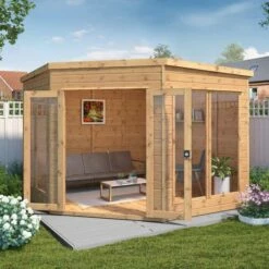 The 10′ x 10′ Shire Highclere Contemporary Summerhouse (3m x 3m) is a contemporary garden room offering ample space for relaxation and entertaining all summer long.