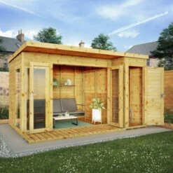 Forest’s Oakley Summer House range includes models in a number of different sizes, with apex or pent roofs. Some of the apex models include a veranda.