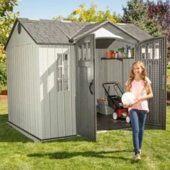 10′ X 7′ Suncast Modernist Plastic Garden Storage Shed With Barn-Style Door (3.28m X 2.22m)