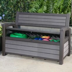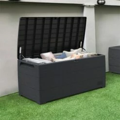 4’7 X 2’5 Suncast 507 Litre Ratten-effect Plastic Storage Box – Stoney Grey (1.4m X 0.73m)
