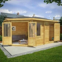Mercia 5m X 3m Corner Log Cabin Plus Side Shed (34mm) – Double Glazed
