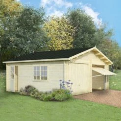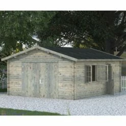 Palmako Roger 5.1m X 5.5m Log Cabin Garage (44mm) – Double Doors