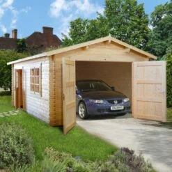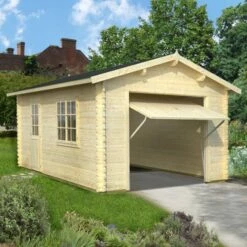 Palmako Roger 4.5m X 5.5m Extra Wide Log Cabin Single Garage (44mm) – Up And Over Door