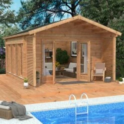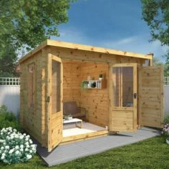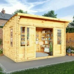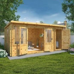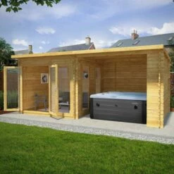 Mercia Studio 6m X 3m Pent Log Cabin With Outdoor Area (28mm) – Double Glazed