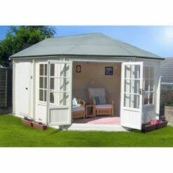 Shire Leygrove 4.3m X 3m Corner Log Cabin Summerhouse With Side Shed (28mm)